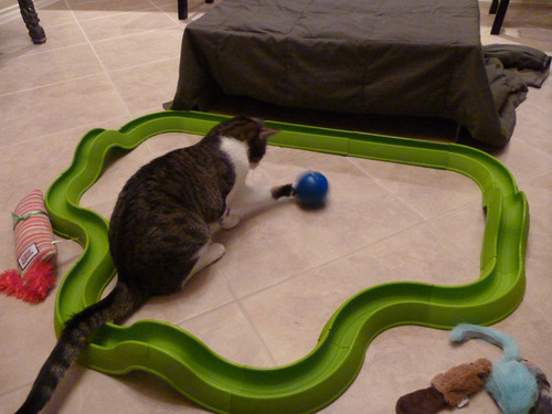 MultiVet SlimCat Interactive Toy and Food Dispenser cope with bad cat behaviorcryingconstantly for food and behave when you do not feed him. MultiVet SlimCatInteractiveToy and Food Dispenser is jsolusinya. You simply fill the ball withmakanankemudian Hewill drive around for a while and then leave. When he was hungryagain, he would go back there and eat the rest. It seems to amuse him and buy MultiVetInteractiveToy SlimCat and Food Dispenser you can work or do other activities without the need feedingyour cat.